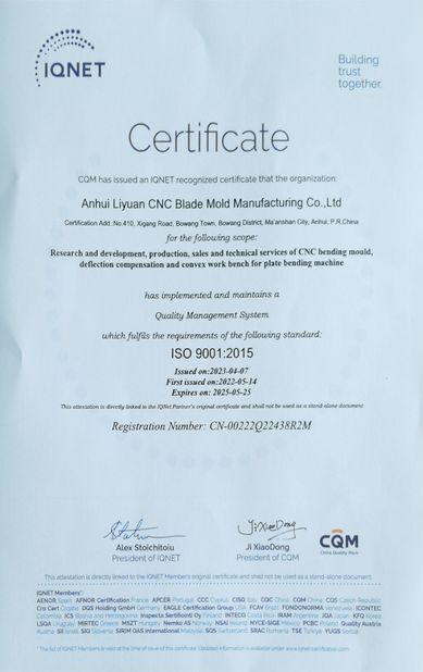 • Κίνα Anhui Liyuan CNC Blade Mold Manufacturing Co., Ltd. Πιστοποιήσεις
